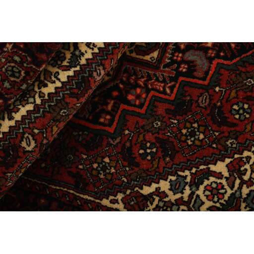 Dit tapijt komt uit het district Hamadan, een belangrijk centrum voor de tapijthandel en tevens het meest productieve tapijtproductiegebied van Iran. Hamadan is een grote stad met honderdduizenden inwoners. Net als Ekbatan was het een hoofdstad van de Achaemenidische koningen. Het heeft een inheemse Joodse bevolking en talrijke monumenten, waarvan de belangrijkste de graven van Esther en Mordicai (centraal voor Joodse pelgrims) en het graf in Avicenna zijn. Hamadan is een provinciale hoofdstad. Er worden twee soorten tapijten geknoopt. Eén is het zogenaamde "stadskleed", ook wel bekend als de Shahrbaff. De productie is modern en grotendeels door de staat gecontroleerd. De dorpsproductie is echter veel belangrijker; Hamadan is een marktstad voor veel tapijtproducerende dorpen die elk hun eigen patroon hebben. De meest prominente zijn Borchalu, Tuserkman, Memraban, Khamseh, Begardeh, Enjilas, Hosseinabad en Zandjan. Er is een breed scala aan patronen, maar de kwaliteit is zeer consistent. De kleuren zijn sterk, en vaak plantenkleuren. De patronen zijn gedurfd, hoewel willekeurig, en Hosseinabad en Enjilas in het bijzonder staan bekend om doorlopende patronen. De tapijten zijn meestal niet veel groter dan 3 bij 2 meter.