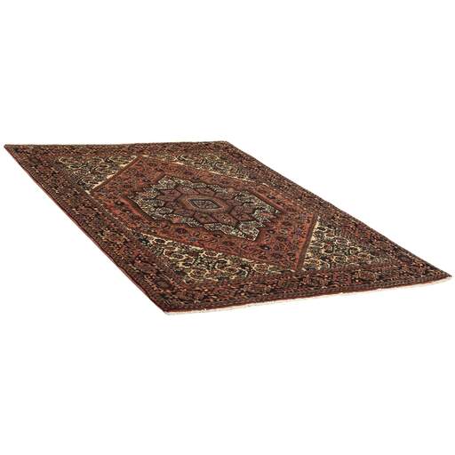 Dit tapijt komt uit het district Hamadan, een belangrijk centrum voor de tapijthandel en tevens het meest productieve tapijtproductiegebied van Iran. Hamadan is een grote stad met honderdduizenden inwoners. Net als Ekbatan was het een hoofdstad van de Achaemenidische koningen. Het heeft een inheemse Joodse bevolking en talrijke monumenten, waarvan de belangrijkste de graven van Esther en Mordicai (centraal voor Joodse pelgrims) en het graf in Avicenna zijn. Hamadan is een provinciale hoofdstad. Er worden twee soorten tapijten geknoopt. Eén is het zogenaamde "stadskleed", ook wel bekend als de Shahrbaff. De productie is modern en grotendeels door de staat gecontroleerd. De dorpsproductie is echter veel belangrijker; Hamadan is een marktstad voor veel tapijtproducerende dorpen die elk hun eigen patroon hebben. De meest prominente zijn Borchalu, Tuserkman, Memraban, Khamseh, Begardeh, Enjilas, Hosseinabad en Zandjan. Er is een breed scala aan patronen, maar de kwaliteit is zeer consistent. De kleuren zijn sterk, en vaak plantenkleuren. De patronen zijn gedurfd, hoewel willekeurig, en Hosseinabad en Enjilas in het bijzonder staan bekend om doorlopende patronen. De tapijten zijn meestal niet veel groter dan 3 bij 2 meter.