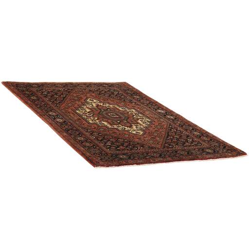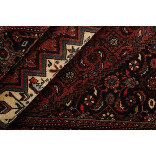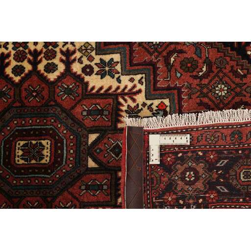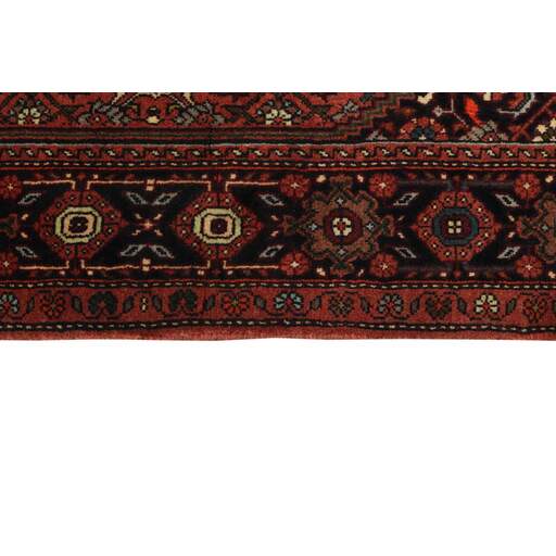 Dit tapijt komt uit het district Hamadan, een belangrijk centrum voor de tapijthandel en tevens het meest productieve tapijtproductiegebied van Iran. Hamadan is een grote stad met honderdduizenden inwoners. Net als Ekbatan was het een hoofdstad van de Achaemenidische koningen. Het heeft een inheemse Joodse bevolking en talrijke monumenten, waarvan de belangrijkste de graven van Esther en Mordicai (centraal voor Joodse pelgrims) en het graf in Avicenna zijn. Hamadan is een provinciale hoofdstad. Er worden twee soorten tapijten geknoopt. Eén is het zogenaamde "stadskleed", ook wel bekend als de Shahrbaff. De productie is modern en grotendeels door de staat gecontroleerd. De dorpsproductie is echter veel belangrijker; Hamadan is een marktstad voor veel tapijtproducerende dorpen die elk hun eigen patroon hebben. De meest prominente zijn Borchalu, Tuserkman, Memraban, Khamseh, Begardeh, Enjilas, Hosseinabad en Zandjan. Er is een breed scala aan patronen, maar de kwaliteit is zeer consistent. De kleuren zijn sterk, en vaak plantenkleuren. De patronen zijn gedurfd, hoewel willekeurig, en Hosseinabad en Enjilas in het bijzonder staan bekend om doorlopende patronen. De tapijten zijn meestal niet veel groter dan 3 bij 2 meter.