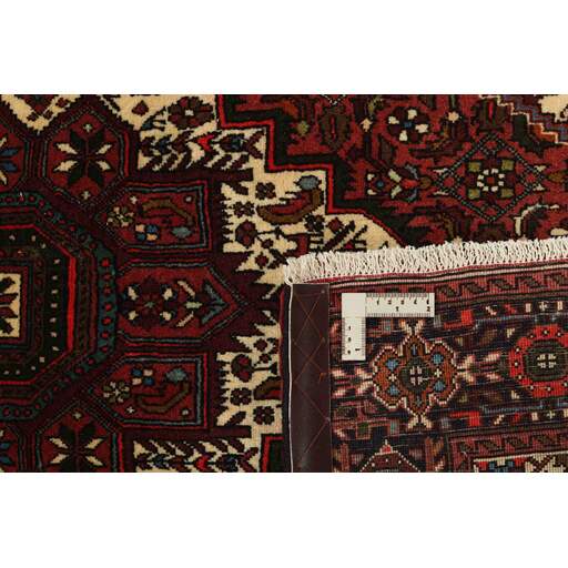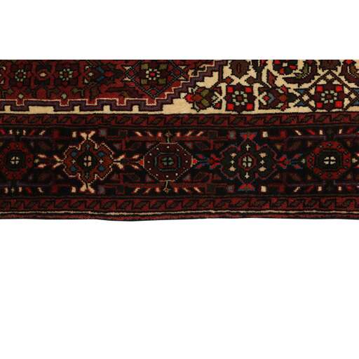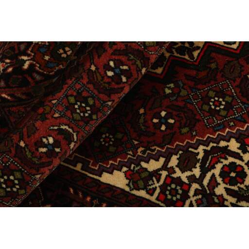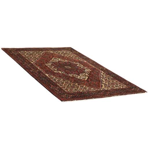 Dit tapijt komt uit het district Hamadan, een belangrijk centrum voor de tapijthandel en tevens het meest productieve tapijtproductiegebied van Iran. Hamadan is een grote stad met honderdduizenden inwoners. Net als Ekbatan was het een hoofdstad van de Achaemenidische koningen. Het heeft een inheemse Joodse bevolking en talrijke monumenten, waarvan de belangrijkste de graven van Esther en Mordicai (centraal voor Joodse pelgrims) en het graf in Avicenna zijn. Hamadan is een provinciale hoofdstad. Er worden twee soorten tapijten geknoopt. Eén is het zogenaamde "stadskleed", ook wel bekend als de Shahrbaff. De productie is modern en grotendeels door de staat gecontroleerd. De dorpsproductie is echter veel belangrijker; Hamadan is een marktstad voor veel tapijtproducerende dorpen die elk hun eigen patroon hebben. De meest prominente zijn Borchalu, Tuserkman, Memraban, Khamseh, Begardeh, Enjilas, Hosseinabad en Zandjan. Er is een breed scala aan patronen, maar de kwaliteit is zeer consistent. De kleuren zijn sterk, en vaak plantenkleuren. De patronen zijn gedurfd, hoewel willekeurig, en Hosseinabad en Enjilas in het bijzonder staan bekend om doorlopende patronen. De tapijten zijn meestal niet veel groter dan 3 bij 2 meter.