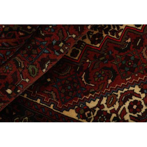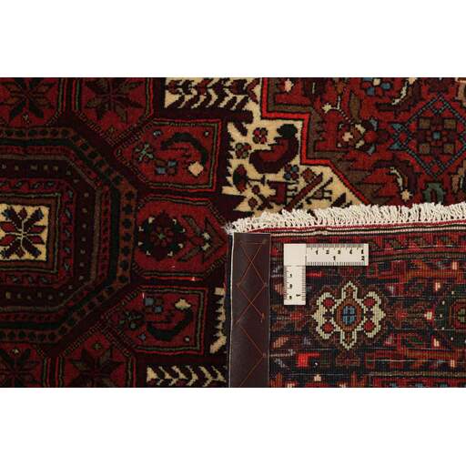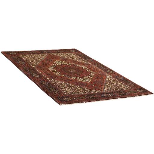 Dit tapijt komt uit het district Hamadan, een belangrijk centrum voor de tapijthandel en tevens het meest productieve tapijtproductiegebied van Iran. Hamadan is een grote stad met honderdduizenden inwoners. Net als Ekbatan was het een hoofdstad van de Achaemenidische koningen. Het heeft een inheemse Joodse bevolking en talrijke monumenten, waarvan de belangrijkste de graven van Esther en Mordicai (centraal voor Joodse pelgrims) en het graf in Avicenna zijn. Hamadan is een provinciale hoofdstad. Er worden twee soorten tapijten geknoopt. Eén is het zogenaamde "stadskleed", ook wel bekend als de Shahrbaff. De productie is modern en grotendeels door de staat gecontroleerd. De dorpsproductie is echter veel belangrijker; Hamadan is een marktstad voor veel tapijtproducerende dorpen die elk hun eigen patroon hebben. De meest prominente zijn Borchalu, Tuserkman, Memraban, Khamseh, Begardeh, Enjilas, Hosseinabad en Zandjan. Er is een breed scala aan patronen, maar de kwaliteit is zeer consistent. De kleuren zijn sterk, en vaak plantenkleuren. De patronen zijn gedurfd, hoewel willekeurig, en Hosseinabad en Enjilas in het bijzonder staan bekend om doorlopende patronen. De tapijten zijn meestal niet veel groter dan 3 bij 2 meter.