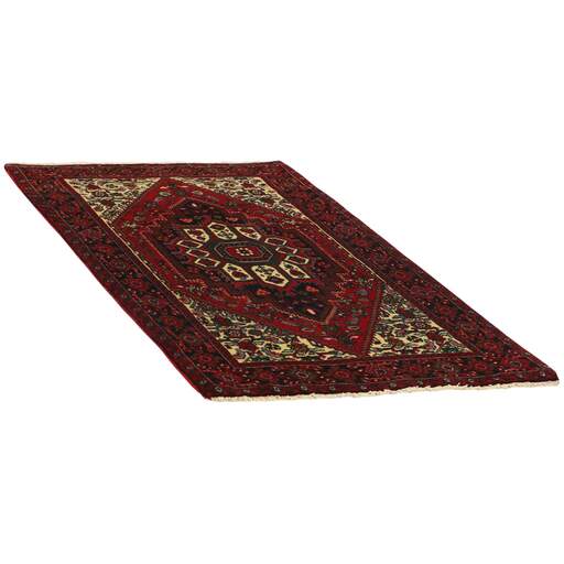Dit tapijt komt uit het district Hamadan, een belangrijk centrum voor de tapijthandel en tevens het meest productieve tapijtproductiegebied van Iran. Hamadan is een grote stad met honderdduizenden inwoners. Net als Ekbatan was het een hoofdstad van de Achaemenidische koningen. Het heeft een inheemse Joodse bevolking en talrijke monumenten, waarvan de belangrijkste de graven van Esther en Mordicai (centraal voor Joodse pelgrims) en het graf in Avicenna zijn. Hamadan is een provinciale hoofdstad. Er worden twee soorten tapijten geknoopt. Eén is het zogenaamde "stadskleed", ook wel bekend als de Shahrbaff. De productie is modern en grotendeels door de staat gecontroleerd. De dorpsproductie is echter veel belangrijker; Hamadan is een marktstad voor veel tapijtproducerende dorpen die elk hun eigen patroon hebben. De meest prominente zijn Borchalu, Tuserkman, Memraban, Khamseh, Begardeh, Enjilas, Hosseinabad en Zandjan. Er is een breed scala aan patronen, maar de kwaliteit is zeer consistent. De kleuren zijn sterk, en vaak plantenkleuren. De patronen zijn gedurfd, hoewel willekeurig, en Hosseinabad en Enjilas in het bijzonder staan bekend om doorlopende patronen. De tapijten zijn meestal niet veel groter dan 3 bij 2 meter.