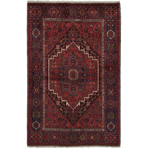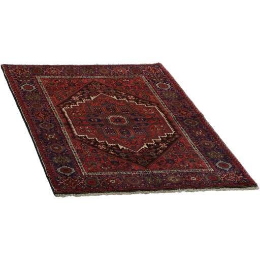 Dit tapijt komt uit het district Hamadan, een belangrijk centrum voor de tapijthandel en tevens het meest productieve tapijtproductiegebied van Iran. Hamadan is een grote stad met honderdduizenden inwoners. Net als Ekbatan was het een hoofdstad van de Achaemenidische koningen. Het heeft een inheemse Joodse bevolking en talrijke monumenten, waarvan de belangrijkste de graven van Esther en Mordicai (centraal voor Joodse pelgrims) en het graf in Avicenna zijn. Hamadan is een provinciale hoofdstad. Er worden twee soorten tapijten geknoopt. Eén is het zogenaamde "stadskleed", ook wel bekend als de Shahrbaff. De productie is modern en grotendeels door de staat gecontroleerd. De dorpsproductie is echter veel belangrijker; Hamadan is een marktstad voor veel tapijtproducerende dorpen die elk hun eigen patroon hebben. De meest prominente zijn Borchalu, Tuserkman, Memraban, Khamseh, Begardeh, Enjilas, Hosseinabad en Zandjan. Er is een breed scala aan patronen, maar de kwaliteit is zeer consistent. De kleuren zijn sterk, en vaak plantenkleuren. De patronen zijn gedurfd, hoewel willekeurig, en Hosseinabad en Enjilas in het bijzonder staan bekend om doorlopende patronen. De tapijten zijn meestal niet veel groter dan 3 bij 2 meter.