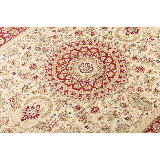 Ghom, een stad met een half miljoen inwoners, ligt ten zuiden van Teheran, aan de weg naar de provincie Markazi (Centraal). De tapijtindustrie van de stad is pas na 1930 ontwikkeld, maar heeft inmiddels een goede reputatie. Omdat er geen traditie of precedent is om op terug te vallen, halen de wevers hun motieven uit verschillende bronnen, vanwaar ze ze overbrengen en combineren. Sommige patronen worden volledig gekopieerd en het is niet ongewoon om kopieën van Joshqan- of Sirjan-tapijten te zien die in Ghom zijn gemaakt, maar ze zijn veel fijner dan de originelen en gemaakt met een zijden pool. Daarnaast worden er verschillende variaties van medaillons en uniforme patronen gemaakt. De pool is ofwel zijde met zijden schering en inslag, of wol, of wol gemengd met zijde, met een katoenen basis. De knopen zijn meestal fijn. Er wordt een breed scala aan kleuren gebruikt, soms in combinaties die vreemd lijken voor westerlingen. Een krachtig roze en groen is met name kenmerkend voor de zijden tapijten.