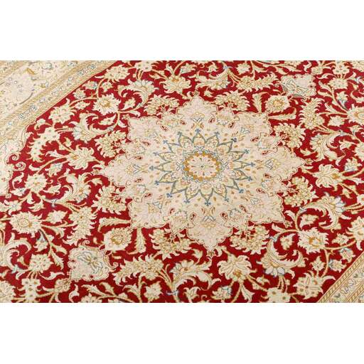 Ghom, een stad met een half miljoen inwoners, ligt ten zuiden van Teheran, aan de weg naar de provincie Markazi (Centraal). De tapijtindustrie van de stad is pas na 1930 ontwikkeld, maar heeft inmiddels een goede reputatie. Omdat er geen traditie of precedent is om op terug te vallen, halen de wevers hun motieven uit verschillende bronnen, vanwaar ze ze overbrengen en combineren. Sommige patronen worden volledig gekopieerd en het is niet ongewoon om kopieën van Joshqan- of Sirjan-tapijten te zien die in Ghom zijn gemaakt, maar ze zijn veel fijner dan de originelen en gemaakt met een zijden pool. Daarnaast worden er verschillende variaties van medaillons en uniforme patronen gemaakt. De pool is ofwel zijde met zijden schering en inslag, of wol, of wol gemengd met zijde, met een katoenen basis. De knopen zijn meestal fijn. Er wordt een breed scala aan kleuren gebruikt, soms in combinaties die vreemd lijken voor westerlingen. Een krachtig roze en groen is met name kenmerkend voor de zijden tapijten.