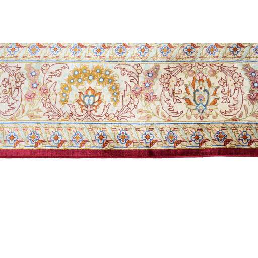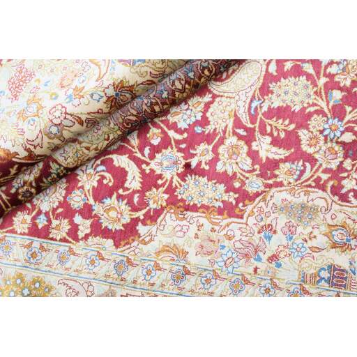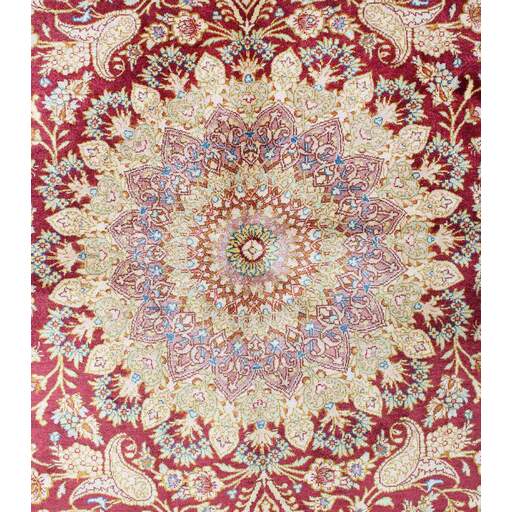 Ghom, een stad met een half miljoen inwoners, ligt ten zuiden van Teheran, aan de weg naar de provincie Markazi (Centraal). De tapijtindustrie van de stad is pas na 1930 ontwikkeld, maar heeft inmiddels een goede reputatie. Omdat er geen traditie of precedent is om op terug te vallen, halen de wevers hun motieven uit verschillende bronnen, vanwaar ze ze overbrengen en combineren. Sommige patronen worden volledig gekopieerd en het is niet ongewoon om kopieën van Joshqan- of Sirjan-tapijten te zien die in Ghom zijn gemaakt, maar ze zijn veel fijner dan de originelen en gemaakt met een zijden pool. Daarnaast worden er verschillende variaties van medaillons en uniforme patronen gemaakt. De pool is ofwel zijde met zijden schering en inslag, of wol, of wol gemengd met zijde, met een katoenen basis. De knopen zijn meestal fijn. Er wordt een breed scala aan kleuren gebruikt, soms in combinaties die vreemd lijken voor westerlingen. Een krachtig roze en groen is met name kenmerkend voor de zijden tapijten.