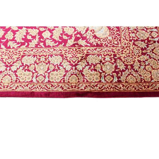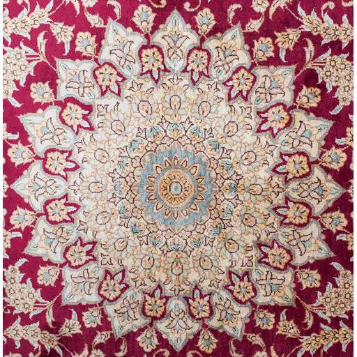 Ghom, een stad met een half miljoen inwoners, ligt ten zuiden van Teheran, aan de weg naar de provincie Markazi (Centraal). De tapijtindustrie van de stad is pas na 1930 ontwikkeld, maar heeft inmiddels een goede reputatie. Omdat er geen traditie of precedent is om op terug te vallen, halen de wevers hun motieven uit verschillende bronnen, vanwaar ze ze overbrengen en combineren. Sommige patronen worden volledig gekopieerd en het is niet ongewoon om kopieën van Joshqan- of Sirjan-tapijten te zien die in Ghom zijn gemaakt, maar ze zijn veel fijner dan de originelen en gemaakt met een zijden pool. Daarnaast worden er verschillende variaties van medaillons en uniforme patronen gemaakt. De pool is ofwel zijde met zijden schering en inslag, of wol, of wol gemengd met zijde, met een katoenen basis. De knopen zijn meestal fijn. Er wordt een breed scala aan kleuren gebruikt, soms in combinaties die vreemd lijken voor westerlingen. Een krachtig roze en groen is met name kenmerkend voor de zijden tapijten.