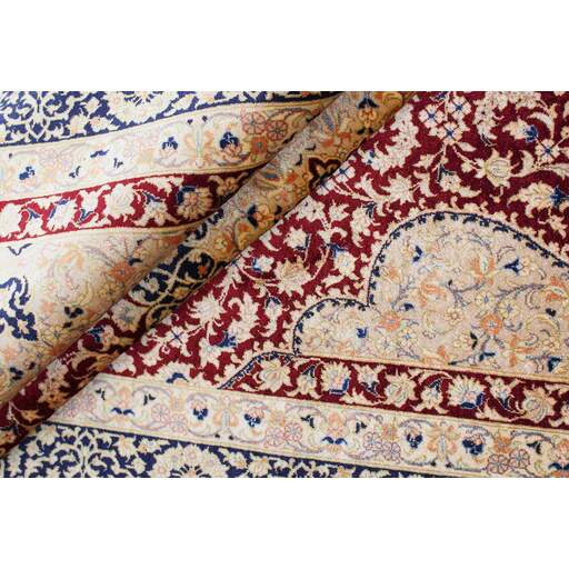 Ghom, een stad met een half miljoen inwoners, ligt ten zuiden van Teheran, aan de weg naar de provincie Markazi (Centraal). De tapijtindustrie van de stad is pas na 1930 ontwikkeld, maar heeft inmiddels een goede reputatie. Omdat er geen traditie of precedent is om op terug te vallen, halen de wevers hun motieven uit verschillende bronnen, vanwaar ze ze overbrengen en combineren. Sommige patronen worden volledig gekopieerd en het is niet ongewoon om kopieën van Joshqan- of Sirjan-tapijten te zien die in Ghom zijn gemaakt, maar ze zijn veel fijner dan de originelen en gemaakt met een zijden pool. Daarnaast worden er verschillende variaties van medaillons en uniforme patronen gemaakt. De pool is ofwel zijde met zijden schering en inslag, of wol, of wol gemengd met zijde, met een katoenen basis. De knopen zijn meestal fijn. Er wordt een breed scala aan kleuren gebruikt, soms in combinaties die vreemd lijken voor westerlingen. Een krachtig roze en groen is met name kenmerkend voor de zijden tapijten.