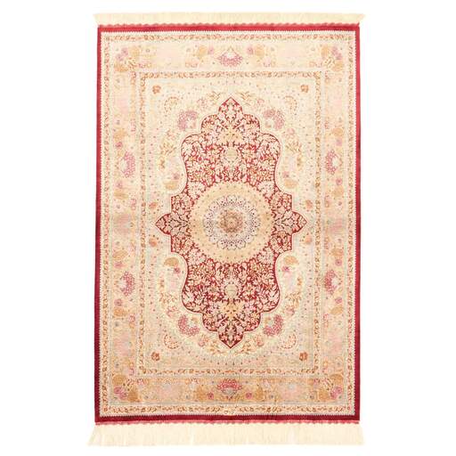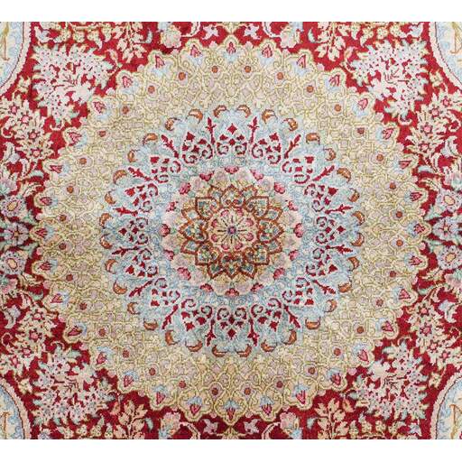 Ghom, een stad met een half miljoen inwoners, ligt ten zuiden van Teheran, aan de weg naar de provincie Markazi (Centraal). De tapijtindustrie van de stad is pas na 1930 ontwikkeld, maar heeft inmiddels een goede reputatie. Omdat er geen traditie of precedent is om op terug te vallen, halen de wevers hun motieven uit verschillende bronnen, vanwaar ze ze overbrengen en combineren. Sommige patronen worden volledig gekopieerd en het is niet ongewoon om kopieën van Joshqan- of Sirjan-tapijten te zien die in Ghom zijn gemaakt, maar ze zijn veel fijner dan de originelen en gemaakt met een zijden pool. Daarnaast worden er verschillende variaties van medaillons en uniforme patronen gemaakt. De pool is ofwel zijde met zijden schering en inslag, of wol, of wol gemengd met zijde, met een katoenen basis. De knopen zijn meestal fijn. Er wordt een breed scala aan kleuren gebruikt, soms in combinaties die vreemd lijken voor westerlingen. Een krachtig roze en groen is met name kenmerkend voor de zijden tapijten.