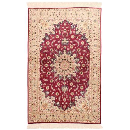 Ghom, een stad met een half miljoen inwoners, ligt ten zuiden van Teheran, aan de weg naar de provincie Markazi (Centraal). De tapijtindustrie van de stad is pas na 1930 ontwikkeld, maar heeft inmiddels een goede reputatie. Omdat er geen traditie of precedent is om op terug te vallen, halen de wevers hun motieven uit verschillende bronnen, vanwaar ze ze overbrengen en combineren. Sommige patronen worden volledig gekopieerd en het is niet ongewoon om kopieën van Joshqan- of Sirjan-tapijten te zien die in Ghom zijn gemaakt, maar ze zijn veel fijner dan de originelen en gemaakt met een zijden pool. Daarnaast worden er verschillende variaties van medaillons en uniforme patronen gemaakt. De pool is ofwel zijde met zijden schering en inslag, of wol, of wol gemengd met zijde, met een katoenen basis. De knopen zijn meestal fijn. Er wordt een breed scala aan kleuren gebruikt, soms in combinaties die vreemd lijken voor westerlingen. Een krachtig roze en groen is met name kenmerkend voor de zijden tapijten.