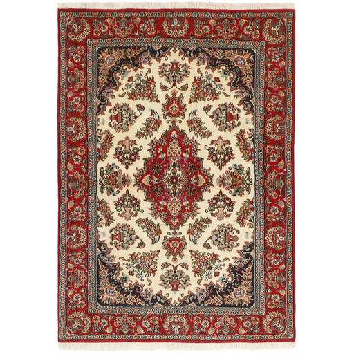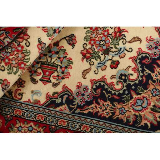 Ghom, een stad met een half miljoen inwoners, ligt ten zuiden van Teheran, aan de weg naar de provincie Markazi (Centraal). De tapijtindustrie van de stad is pas na 1930 ontwikkeld, maar heeft inmiddels een goede reputatie. Omdat er geen traditie of precedent is om op terug te vallen, halen de wevers hun motieven uit verschillende bronnen, vanwaar ze ze overbrengen en combineren. Sommige patronen worden volledig gekopieerd en het is niet ongewoon om kopieën van Joshqan- of Sirjan-tapijten te zien die in Ghom zijn gemaakt, maar ze zijn veel fijner dan de originelen en gemaakt met een zijden pool. Daarnaast worden er verschillende variaties van medaillons en uniforme patronen gemaakt. De pool is ofwel zijde met zijden schering en inslag, of wol, of wol gemengd met zijde, met een katoenen basis. De knopen zijn meestal fijn. Er wordt een breed scala aan kleuren gebruikt, soms in combinaties die vreemd lijken voor westerlingen. Een krachtig roze en groen is met name kenmerkend voor de zijden tapijten.