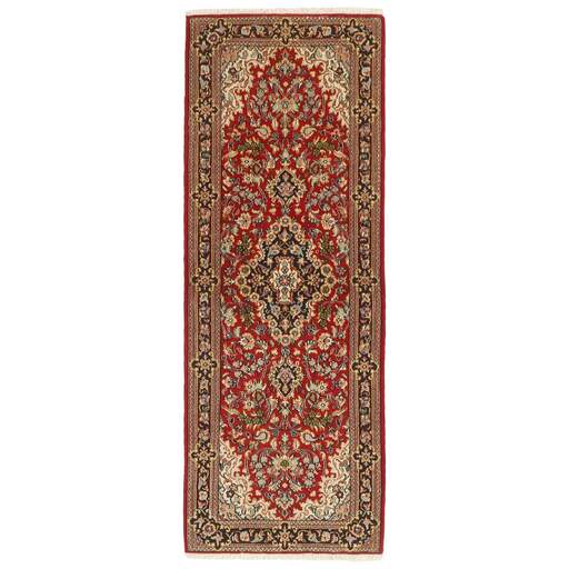 Ghom, een stad met een half miljoen inwoners, ligt ten zuiden van Teheran, aan de weg naar de provincie Markazi (Centraal). De tapijtindustrie van de stad is pas na 1930 ontwikkeld, maar heeft inmiddels een goede reputatie. Omdat er geen traditie of precedent is om op terug te vallen, halen de wevers hun motieven uit verschillende bronnen, vanwaar ze ze overbrengen en combineren. Sommige patronen worden volledig gekopieerd en het is niet ongewoon om kopieën van Joshqan- of Sirjan-tapijten te zien die in Ghom zijn gemaakt, maar ze zijn veel fijner dan de originelen en gemaakt met een zijden pool. Daarnaast worden er verschillende variaties van medaillons en uniforme patronen gemaakt. De pool is ofwel zijde met zijden schering en inslag, of wol, of wol gemengd met zijde, met een katoenen basis. De knopen zijn meestal fijn. Er wordt een breed scala aan kleuren gebruikt, soms in combinaties die vreemd lijken voor westerlingen. Een krachtig roze en groen is met name kenmerkend voor de zijden tapijten.