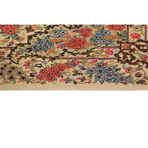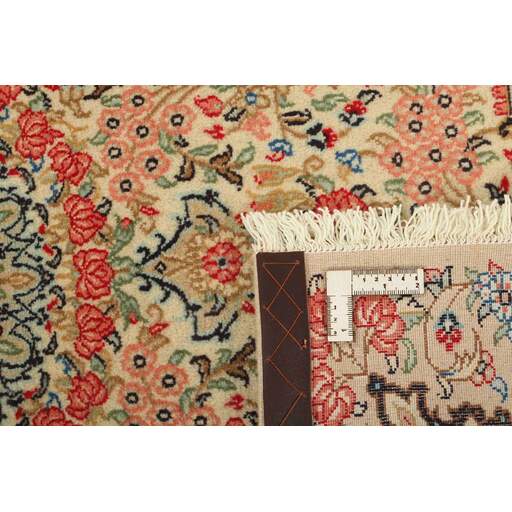 Ghom, een stad met een half miljoen inwoners, ligt ten zuiden van Teheran, aan de weg naar de provincie Markazi (Centraal). De tapijtindustrie van de stad is pas na 1930 ontwikkeld, maar heeft inmiddels een goede reputatie. Omdat er geen traditie of precedent is om op terug te vallen, halen de wevers hun motieven uit verschillende bronnen, vanwaar ze ze overbrengen en combineren. Sommige patronen worden volledig gekopieerd en het is niet ongewoon om kopieën van Joshqan- of Sirjan-tapijten te zien die in Ghom zijn gemaakt, maar ze zijn veel fijner dan de originelen en gemaakt met een zijden pool. Daarnaast worden er verschillende variaties van medaillons en uniforme patronen gemaakt. De pool is ofwel zijde met zijden schering en inslag, of wol, of wol gemengd met zijde, met een katoenen basis. De knopen zijn meestal fijn. Er wordt een breed scala aan kleuren gebruikt, soms in combinaties die vreemd lijken voor westerlingen. Een krachtig roze en groen is met name kenmerkend voor de zijden tapijten.