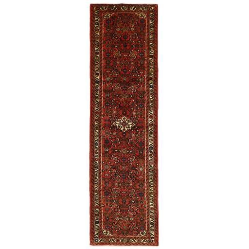 Dit tapijt komt uit het district Hamadan, een belangrijk centrum voor de tapijthandel en tevens het meest productieve tapijtproductiegebied van Iran. Hamadan is een grote stad met honderdduizenden inwoners. Net als Ekbatan was het een hoofdstad van de Achaemenidische koningen. Het heeft een inheemse Joodse bevolking en talrijke monumenten, waarvan de belangrijkste de graven van Esther en Mordicai (centraal voor Joodse pelgrims) en het graf in Avicenna zijn. Hamadan is een provinciale hoofdstad. Er worden twee soorten tapijten geknoopt. Eén is het zogenaamde "stadskleed", ook wel bekend als de Shahrbaff. De productie is modern en grotendeels door de staat gecontroleerd. De dorpsproductie is echter veel belangrijker; Hamadan is een marktstad voor veel tapijtproducerende dorpen die elk hun eigen patroon hebben. De meest prominente zijn Borchalu, Tuserkman, Memraban, Khamseh, Begardeh, Enjilas, Hosseinabad en Zandjan. Er is een breed scala aan patronen, maar de kwaliteit is zeer consistent. De kleuren zijn sterk, en vaak plantenkleuren. De patronen zijn gedurfd, hoewel willekeurig, en Hosseinabad en Enjilas in het bijzonder staan bekend om doorlopende patronen. De tapijten zijn meestal niet veel groter dan 3 bij 2 meter.