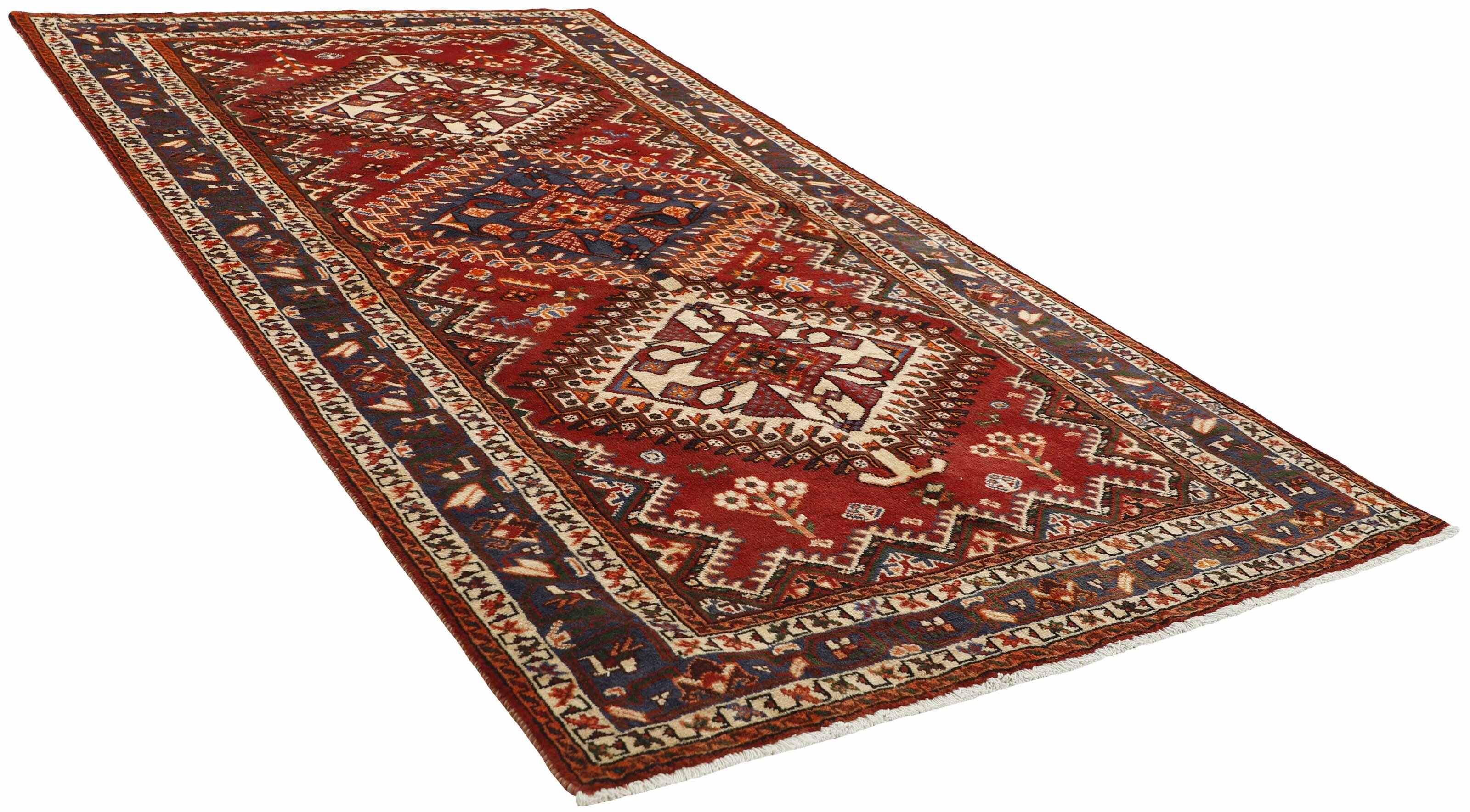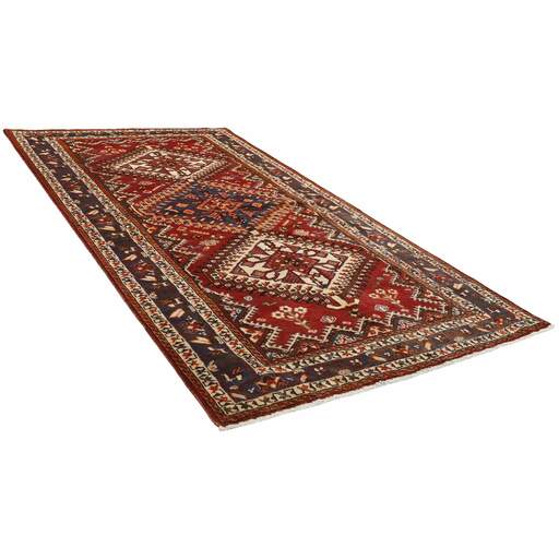 Dit tapijt komt uit het district Hamadan, een belangrijk centrum voor de tapijthandel en tevens het meest productieve tapijtproductiegebied van Iran. Hamadan is een grote stad met honderdduizenden inwoners. Net als Ekbatan was het een hoofdstad van de Achaemenidische koningen. Het heeft een inheemse Joodse bevolking en talrijke monumenten, waarvan de belangrijkste de graven van Esther en Mordicai (centraal voor Joodse pelgrims) en het graf in Avicenna zijn. Hamadan is een provinciale hoofdstad. Er worden twee soorten tapijten geknoopt. Eén is het zogenaamde "stadskleed", ook wel bekend als de Shahrbaff. De productie is modern en grotendeels door de staat gecontroleerd. De dorpsproductie is echter veel belangrijker; Hamadan is een marktstad voor veel tapijtproducerende dorpen die elk hun eigen patroon hebben. De meest prominente zijn Borchalu, Tuserkman, Memraban, Khamseh, Begardeh, Enjilas, Hosseinabad en Zandjan. Er is een breed scala aan patronen, maar de kwaliteit is zeer consistent. De kleuren zijn sterk, en vaak plantenkleuren. De patronen zijn gedurfd, hoewel willekeurig, en Hosseinabad en Enjilas in het bijzonder staan bekend om doorlopende patronen. De tapijten zijn meestal niet veel groter dan 3 bij 2 meter.