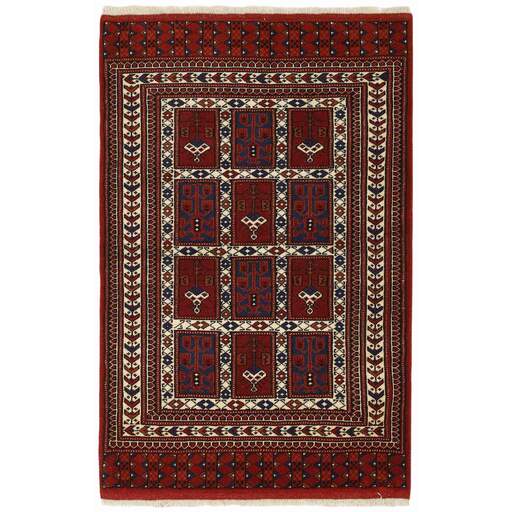 De Turkmenen zijn een zeer belangrijke stam, die voornamelijk in Afghanistan en de voormalige Sovjetrepubliek Turkmenistan woont. De Iraanse bevolking is beperkt tot een gebied rond Gonbad-e-Kavus (500.000 inwoners) in de provincie Mazandran. De Iraanse Turkmenen behoren tot drie stammen; de Yomut, de Tekke en de Atabat. De eerste twee zijn het meest beroemd om hun tapijten. Oorspronkelijk waren het nomadische stammen, maar de meeste Iraanse Turkmenen zijn nu gevestigd, hoewel ze vaak een traditionele ronde tent hebben op een plein in de buurt van hun moderne bakstenen huizen. Turkmeense tapijten zijn traditioneel gemaakt van wol en hebben een beperkt kleurenpalet; rood, zwart en ivoor, soms gemengd met andere kleuren en zijde. De typische patronen zijn geometrische bloemen (güls) en achthoekige patronen met variaties per stam. Volgens de traditie worden de tapijten in verschillende maten gemaakt, afhankelijk van waar ze in de tent worden gebruikt; zoals deurgordijnen, tassenhoezen, etc. Soms worden er voor stamhoofden hele grote tapijten op bestelling gemaakt.