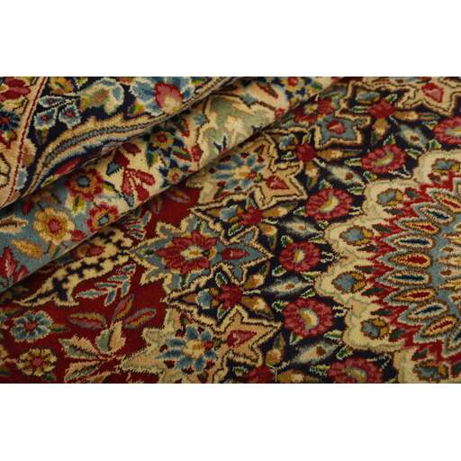 De stad Kerman ligt in het zuidoosten van Iran, aan de rand van de Kavir-e-Lut woestijn, en is de hoofdstad van de provincie Kerman, die ongeveer een half miljoen inwoners heeft. De geografische isolatie heeft gezorgd voor het behoud van veel monumenten - er zouden 90 moskeeën zijn - en een 15e-eeuws mausoleum in het nabijgelegen Mahan zou het mooiste gebouw in Iran zijn. Net als Yazd in het noordwesten, heeft Kerman een grote populatie Zoroastriërs, die de oude Iraanse religie aanhangen, die op andere plaatsen is vervangen door de islam. Het silhouet van Kerman wordt gekenmerkt door zijn windtorens - schoorsteenachtige constructies die werden gebruikt om elke windvlaag op te vangen en deze naar de binnenkant van het huis te leiden. Kerman heeft een oude textieltraditie en in grote delen van de 19e eeuw werden sjaals geweven. Toen de vraag naar sjaals daalde, veranderden de wevers hun weefgetouwen voor de productie van tapijten. Aanvankelijk gebruikten ze dezelfde patronen die ze in de omslagdoeken hadden gebruikt, maar ze pasten ze aan naarmate de mode veranderde, hoewel de Kerman-tapijten hun delicate kleuren en patronen behielden. Alle maten worden gemaakt. De grootste tapijten hebben unieke kleuren en patronen en worden vaak geknoopt in de noordelijke steden Lavar of Ravar. Afgezien van de omslagdoekpatronen heeft Kerman vaak aanpassingen van het Boteh-motief met natuurlijke boeketten bloemen, of aanpassingen van klassieke tapijtpatronen. Er wordt een breed scala aan delicate kleuren gebruikt. De pool is normaal gesproken zacht, fluweelachtig wol, terwijl schering en inslag altijd van katoen zijn.