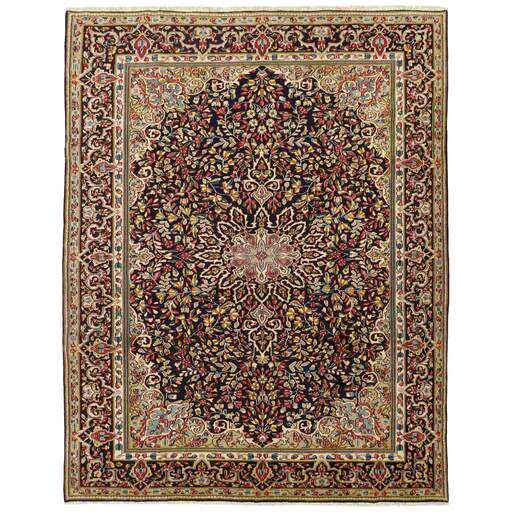 De stad Kerman ligt in het zuidoosten van Iran, aan de rand van de Kavir-e-Lut woestijn, en is de hoofdstad van de provincie Kerman, die ongeveer een half miljoen inwoners heeft. De geografische isolatie heeft gezorgd voor het behoud van veel monumenten - er zouden 90 moskeeën zijn - en een 15e-eeuws mausoleum in het nabijgelegen Mahan zou het mooiste gebouw in Iran zijn. Net als Yazd in het noordwesten, heeft Kerman een grote populatie Zoroastriërs, die de oude Iraanse religie aanhangen, die op andere plaatsen is vervangen door de islam. Het silhouet van Kerman wordt gekenmerkt door zijn windtorens - schoorsteenachtige constructies die werden gebruikt om elke windvlaag op te vangen en deze naar de binnenkant van het huis te leiden. Kerman heeft een oude textieltraditie en in grote delen van de 19e eeuw werden sjaals geweven. Toen de vraag naar sjaals daalde, veranderden de wevers hun weefgetouwen voor de productie van tapijten. Aanvankelijk gebruikten ze dezelfde patronen die ze in de omslagdoeken hadden gebruikt, maar ze pasten ze aan naarmate de mode veranderde, hoewel de Kerman-tapijten hun delicate kleuren en patronen behielden. Alle maten worden gemaakt. De grootste tapijten hebben unieke kleuren en patronen en worden vaak geknoopt in de noordelijke steden Lavar of Ravar. Afgezien van de omslagdoekpatronen heeft Kerman vaak aanpassingen van het Boteh-motief met natuurlijke boeketten bloemen, of aanpassingen van klassieke tapijtpatronen. Er wordt een breed scala aan delicate kleuren gebruikt. De pool is normaal gesproken zacht, fluweelachtig wol, terwijl schering en inslag altijd van katoen zijn.