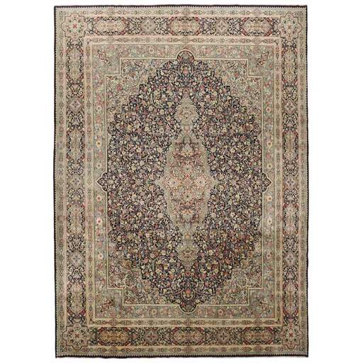 De stad Kerman ligt in het zuidoosten van Iran, aan de rand van de Kavir-e-Lut woestijn, en is de hoofdstad van de provincie Kerman, die ongeveer een half miljoen inwoners heeft. De geografische isolatie heeft gezorgd voor het behoud van veel monumenten - er zouden 90 moskeeën zijn - en een 15e-eeuws mausoleum in het nabijgelegen Mahan zou het mooiste gebouw in Iran zijn. Net als Yazd in het noordwesten, heeft Kerman een grote populatie Zoroastriërs, die de oude Iraanse religie aanhangen, die op andere plaatsen is vervangen door de islam. Het silhouet van Kerman wordt gekenmerkt door zijn windtorens - schoorsteenachtige constructies die werden gebruikt om elke windvlaag op te vangen en deze naar de binnenkant van het huis te leiden. Kerman heeft een oude textieltraditie en in grote delen van de 19e eeuw werden sjaals geweven. Toen de vraag naar sjaals daalde, veranderden de wevers hun weefgetouwen voor de productie van tapijten. Aanvankelijk gebruikten ze dezelfde patronen die ze in de omslagdoeken hadden gebruikt, maar ze pasten ze aan naarmate de mode veranderde, hoewel de Kerman-tapijten hun delicate kleuren en patronen behielden. Alle maten worden gemaakt. De grootste tapijten hebben unieke kleuren en patronen en worden vaak geknoopt in de noordelijke steden Lavar of Ravar. Afgezien van de omslagdoekpatronen heeft Kerman vaak aanpassingen van het Boteh-motief met natuurlijke boeketten bloemen, of aanpassingen van klassieke tapijtpatronen. Er wordt een breed scala aan delicate kleuren gebruikt. De pool is normaal gesproken zacht, fluweelachtig wol, terwijl schering en inslag altijd van katoen zijn.