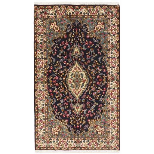 De stad Kerman ligt in het zuidoosten van Iran, aan de rand van de Kavir-e-Lut woestijn, en is de hoofdstad van de provincie Kerman, die ongeveer een half miljoen inwoners heeft. De geografische isolatie heeft gezorgd voor het behoud van veel monumenten - er zouden 90 moskeeën zijn - en een 15e-eeuws mausoleum in het nabijgelegen Mahan zou het mooiste gebouw in Iran zijn. Net als Yazd in het noordwesten, heeft Kerman een grote populatie Zoroastriërs, die de oude Iraanse religie aanhangen, die op andere plaatsen is vervangen door de islam. Het silhouet van Kerman wordt gekenmerkt door zijn windtorens - schoorsteenachtige constructies die werden gebruikt om elke windvlaag op te vangen en deze naar de binnenkant van het huis te leiden. Kerman heeft een oude textieltraditie en in grote delen van de 19e eeuw werden sjaals geweven. Toen de vraag naar sjaals daalde, veranderden de wevers hun weefgetouwen voor de productie van tapijten. Aanvankelijk gebruikten ze dezelfde patronen die ze in de omslagdoeken hadden gebruikt, maar ze pasten ze aan naarmate de mode veranderde, hoewel de Kerman-tapijten hun delicate kleuren en patronen behielden. Alle maten worden gemaakt. De grootste tapijten hebben unieke kleuren en patronen en worden vaak geknoopt in de noordelijke steden Lavar of Ravar. Afgezien van de omslagdoekpatronen heeft Kerman vaak aanpassingen van het Boteh-motief met natuurlijke boeketten bloemen, of aanpassingen van klassieke tapijtpatronen. Er wordt een breed scala aan delicate kleuren gebruikt. De pool is normaal gesproken zacht, fluweelachtig wol, terwijl schering en inslag altijd van katoen zijn.