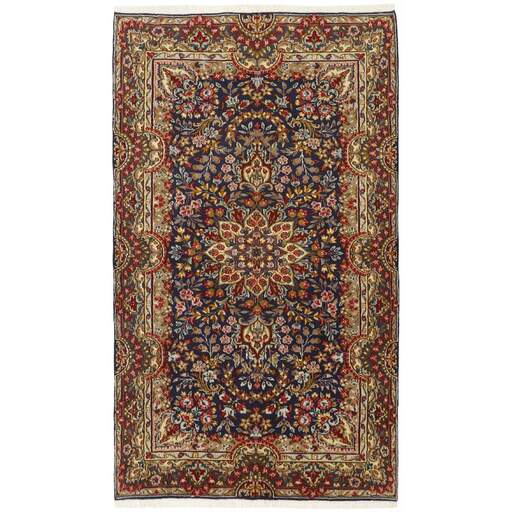 De stad Kerman ligt in het zuidoosten van Iran, aan de rand van de Kavir-e-Lut woestijn, en is de hoofdstad van de provincie Kerman, die ongeveer een half miljoen inwoners heeft. De geografische isolatie heeft gezorgd voor het behoud van veel monumenten - er zouden 90 moskeeën zijn - en een 15e-eeuws mausoleum in het nabijgelegen Mahan zou het mooiste gebouw in Iran zijn. Net als Yazd in het noordwesten, heeft Kerman een grote populatie Zoroastriërs, die de oude Iraanse religie aanhangen, die op andere plaatsen is vervangen door de islam. Het silhouet van Kerman wordt gekenmerkt door zijn windtorens - schoorsteenachtige constructies die werden gebruikt om elke windvlaag op te vangen en deze naar de binnenkant van het huis te leiden. Kerman heeft een oude textieltraditie en in grote delen van de 19e eeuw werden sjaals geweven. Toen de vraag naar sjaals daalde, veranderden de wevers hun weefgetouwen voor de productie van tapijten. Aanvankelijk gebruikten ze dezelfde patronen die ze in de omslagdoeken hadden gebruikt, maar ze pasten ze aan naarmate de mode veranderde, hoewel de Kerman-tapijten hun delicate kleuren en patronen behielden. Alle maten worden gemaakt. De grootste tapijten hebben unieke kleuren en patronen en worden vaak geknoopt in de noordelijke steden Lavar of Ravar. Afgezien van de omslagdoekpatronen heeft Kerman vaak aanpassingen van het Boteh-motief met natuurlijke boeketten bloemen, of aanpassingen van klassieke tapijtpatronen. Er wordt een breed scala aan delicate kleuren gebruikt. De pool is normaal gesproken zacht, fluweelachtig wol, terwijl schering en inslag altijd van katoen zijn.
