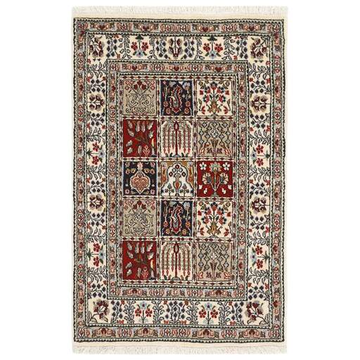 Moud is een klein stadje ten zuiden van Mashad, in de provincie Khorrasan. Tapijten uit dit gebied worden gekenmerkt door homogeniteit in patronen en kwaliteit. De schering en inslag zijn van katoen en de pool is van wol. De versieringen zijn een versie van de traditionele Perzische schildpadversiering. De tapijten worden in alle maten geproduceerd. Moud-tapijten worden vaak gekopieerd in India, vanwege hun opmerkelijke homogeniteit. De karakteristieke Moud-ontwerpen behoren tot de meest uniforme, gelijkmatig geknoopte en gemakkelijk herkenbare ontwerpen van de provincie Khorrasan. Moud Mahi worden gemaakt in een beige, lichtrode of blauwe tint, met all-over Mahi-patronen of met een stervormig medaillon. Mahi betekent vis en het Mahi-patroon is het meest gebruikte patroon in echte Perzische tapijten. Als je er goed naar kijkt, zie je een vijver omringd door vier vissen.