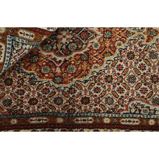 Moud is een klein stadje ten zuiden van Mashad, in de provincie Khorrasan. Tapijten uit dit gebied worden gekenmerkt door homogeniteit in patronen en kwaliteit. De schering en inslag zijn van katoen en de pool is van wol. De versieringen zijn een versie van de traditionele Perzische schildpadversiering. De tapijten worden in alle maten geproduceerd. Moud-tapijten worden vaak gekopieerd in India, vanwege hun opmerkelijke homogeniteit. De karakteristieke Moud-ontwerpen behoren tot de meest uniforme, gelijkmatig geknoopte en gemakkelijk herkenbare ontwerpen van de provincie Khorrasan. Moud Mahi worden gemaakt in een beige, lichtrode of blauwe tint, met all-over Mahi-patronen of met een stervormig medaillon. Mahi betekent vis en het Mahi-patroon is het meest gebruikte patroon in echte Perzische tapijten. Als je er goed naar kijkt, zie je een vijver omringd door vier vissen.