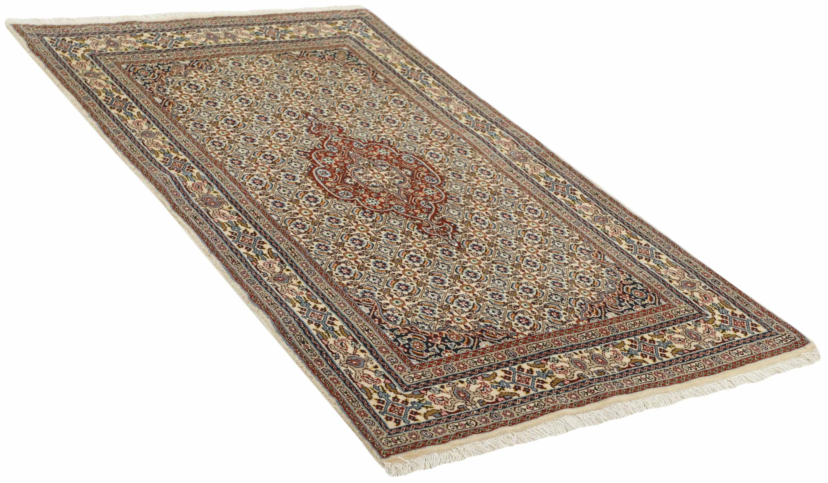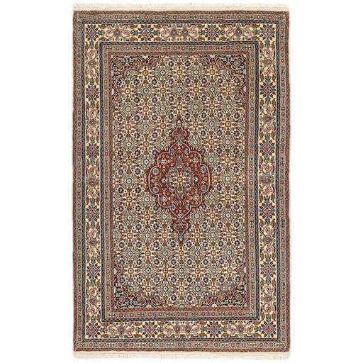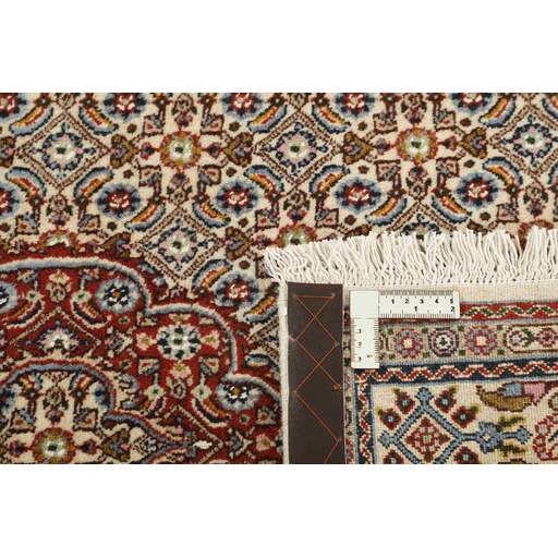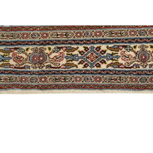 Moud is een klein stadje ten zuiden van Mashad, in de provincie Khorrasan. Tapijten uit dit gebied worden gekenmerkt door homogeniteit in patronen en kwaliteit. De schering en inslag zijn van katoen en de pool is van wol. De versieringen zijn een versie van de traditionele Perzische schildpadversiering. De tapijten worden in alle maten geproduceerd. Moud-tapijten worden vaak gekopieerd in India, vanwege hun opmerkelijke homogeniteit. De karakteristieke Moud-ontwerpen behoren tot de meest uniforme, gelijkmatig geknoopte en gemakkelijk herkenbare ontwerpen van de provincie Khorrasan. Moud Mahi worden gemaakt in een beige, lichtrode of blauwe tint, met all-over Mahi-patronen of met een stervormig medaillon. Mahi betekent vis en het Mahi-patroon is het meest gebruikte patroon in echte Perzische tapijten. Als je er goed naar kijkt, zie je een vijver omringd door vier vissen.